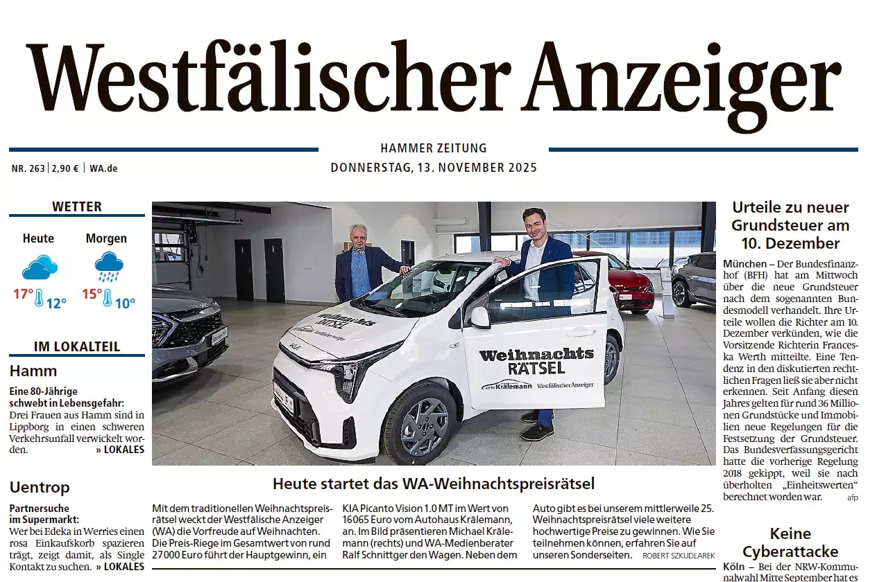 Auch in diesem Jahr unterstützen wir das traditionelle Weihnachtspreisrätsel des Westfälischen Anzeigers als Hauptsponsor.